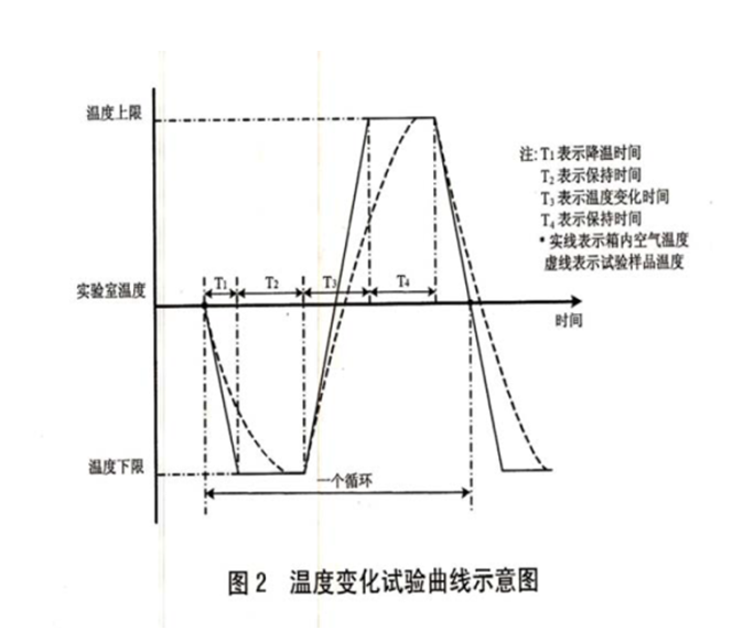 虽然一般的试验标准中对温度冲击试验的起始温度不予提及或不做硬性规定,但这却是试验进行时必须考虑的问题,因为涉及到试验是结束在低温还是高温状态,这决定了是否需要对产品进行烘干,而导致延长试验时间。如果试验结束在低湿状态,受试产品从试验箱(室)内取出后,应在正常的试验大气条件下进行恢复,直至样品到达温度稳定,这一操作难免使试验样品表面产生凝露引入湿度对产品的影响。从而改变试验的性质。MIL-STD-810F与GB 2423中速两个标准中画的试验曲线图,都是从低温开始试验,可见以低温作为冲击起始温度,是更好的试验方法。